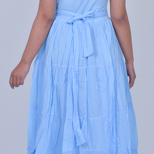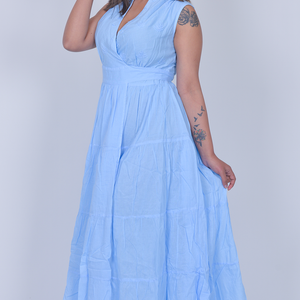 The Wrap Dress is a dreamy, sky-blue statement piece designed for effortless elegance. Featuring a flattering wrap-style bodice with a soft V-neckline, it beautifully enhances the waist while offering a graceful silhouette.