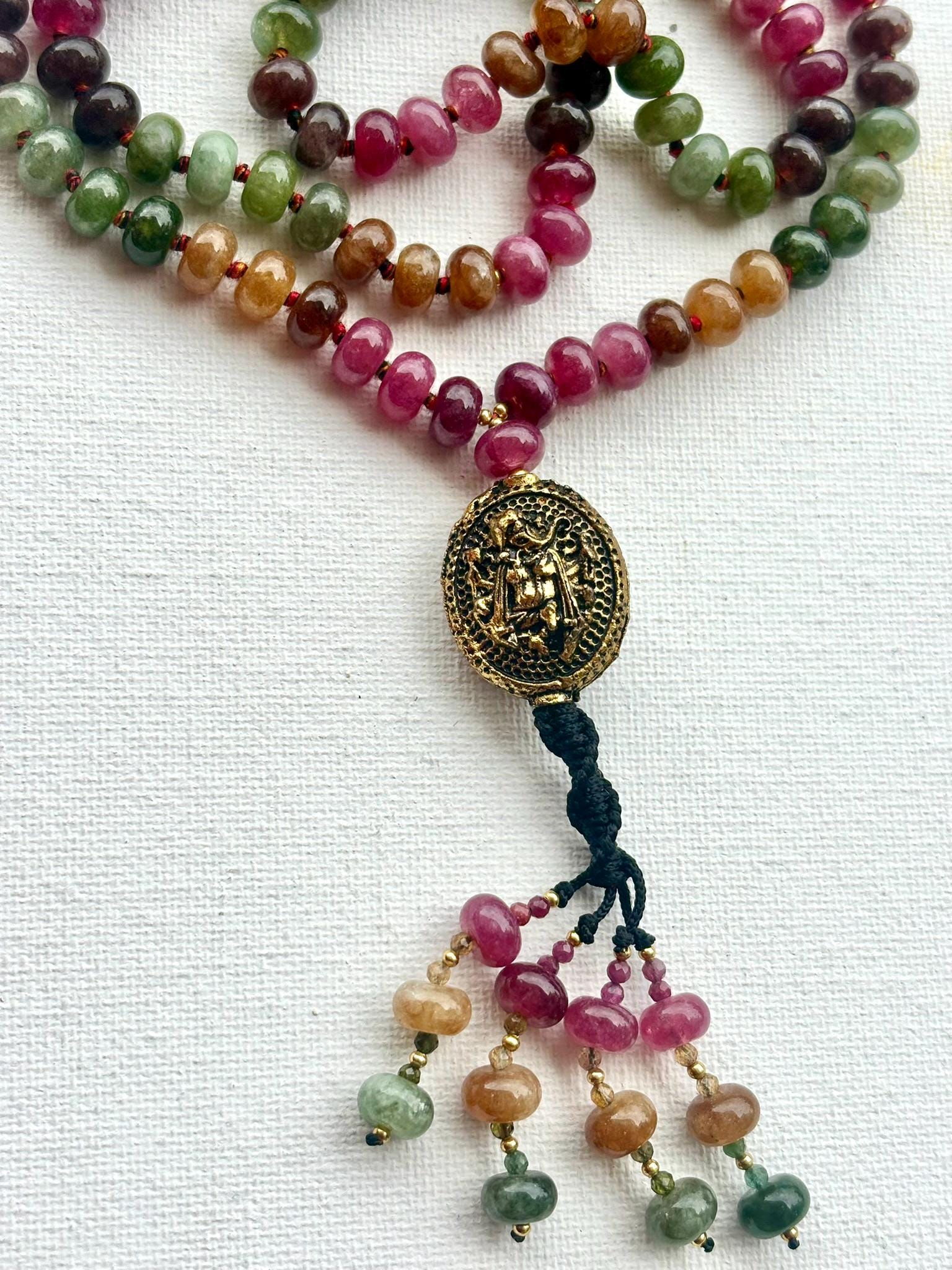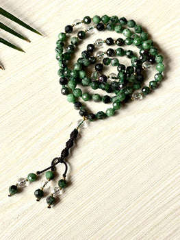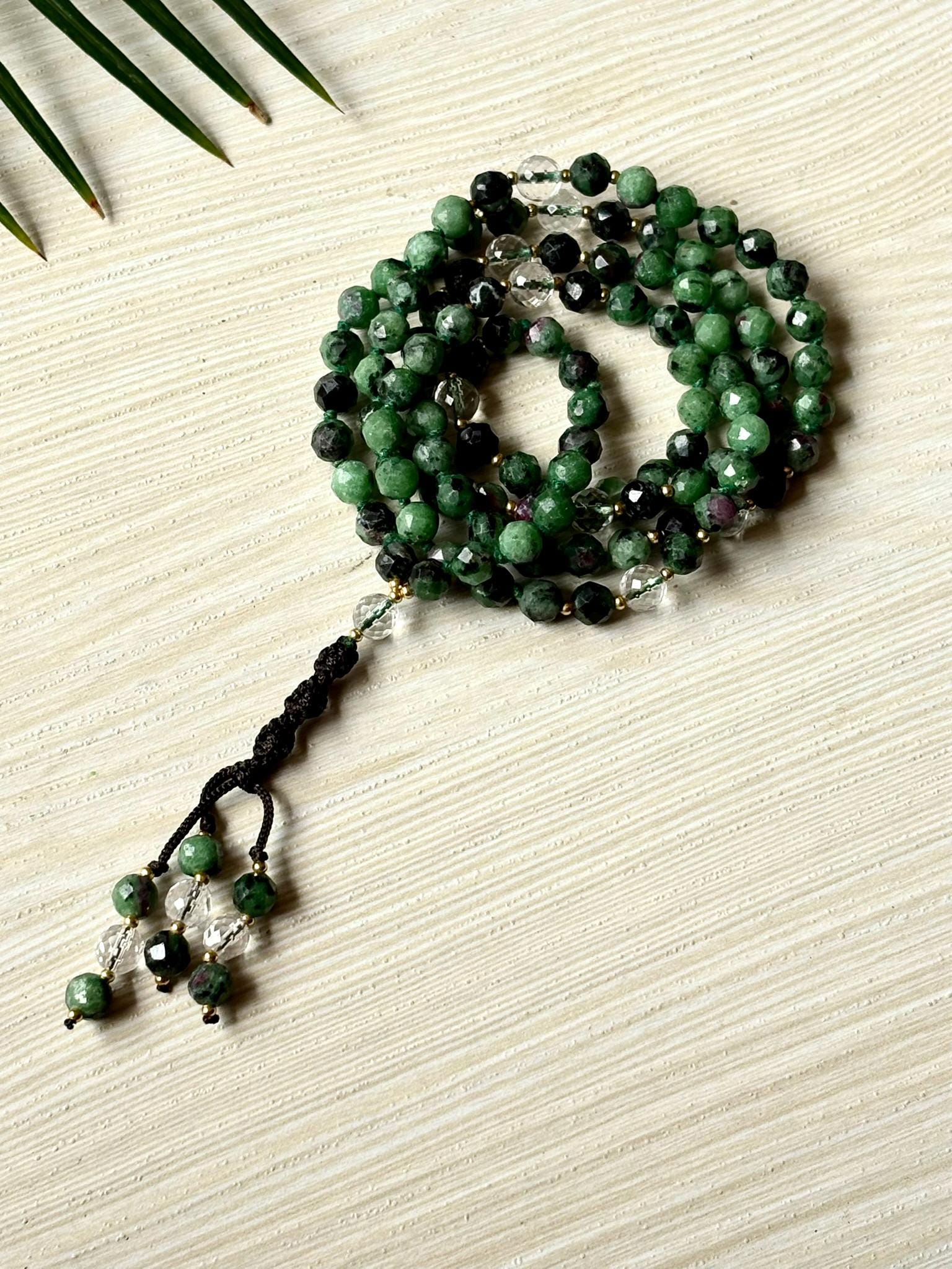Ruby Zoisite Mala Necklace with Clear Quartz,Tassel mala, Prayer Necklace, 108 Mala Beads, Statement Necklace Spiritual Mala