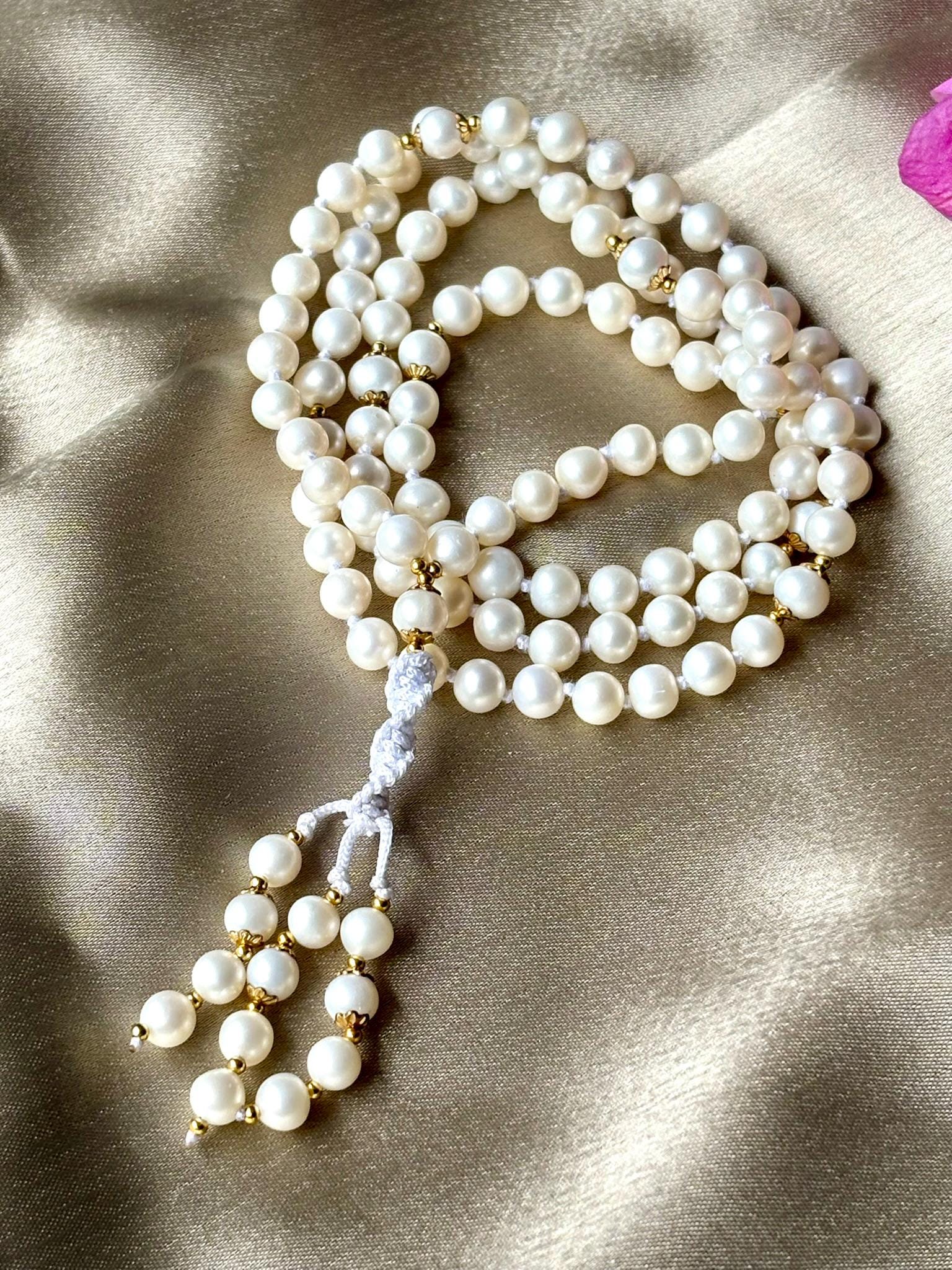 Mother of Pearl Mala Necklace,6mm Freshwater Pearl Necklace,Zodiac Mala Gift,108 beaded necklace,Yoga Beaded Necklace