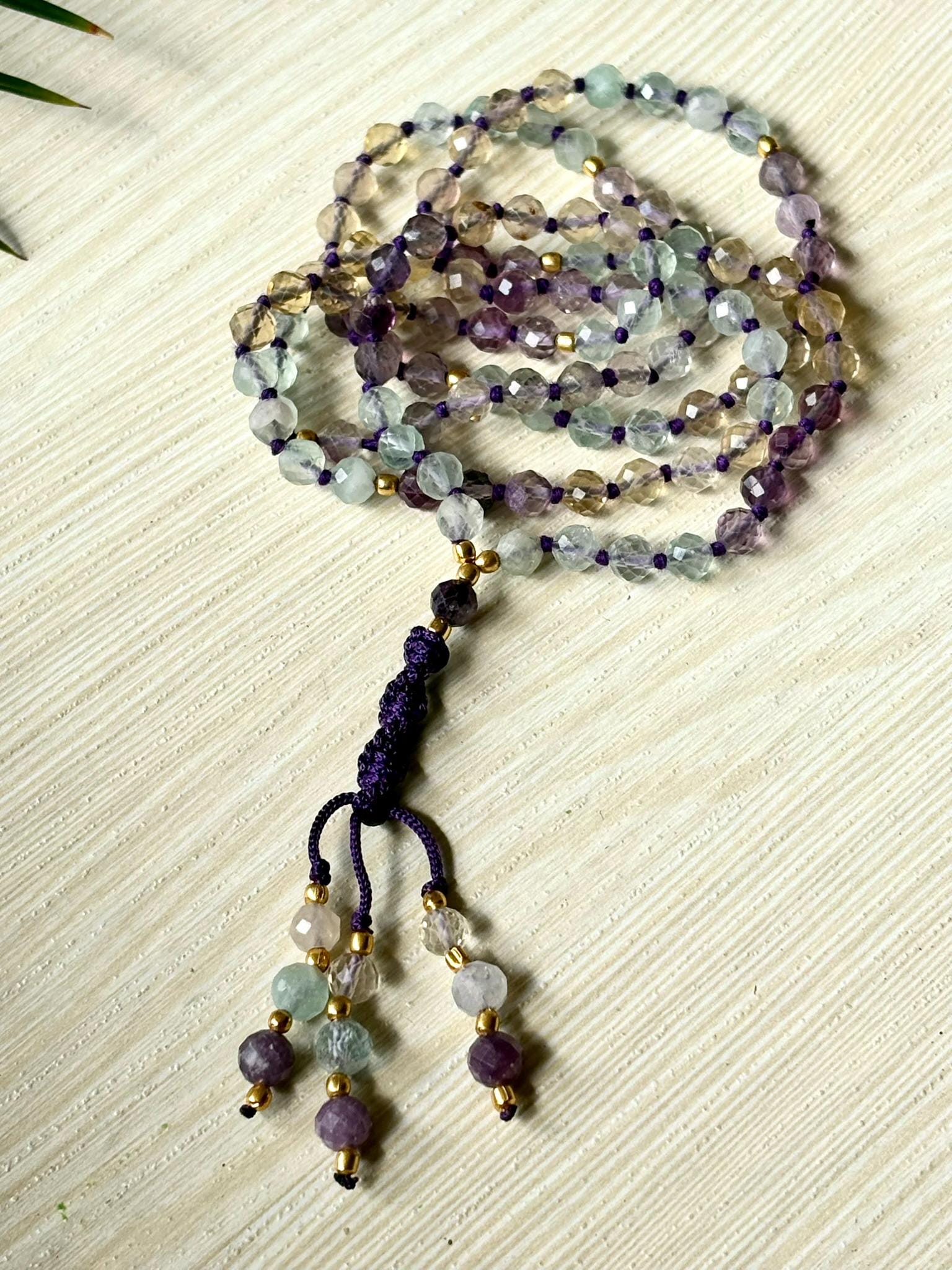 Fluorite Mala Necklace, Zodiac Mala Gift,108 japa mala beaded necklace,Yoga Beaded Necklace