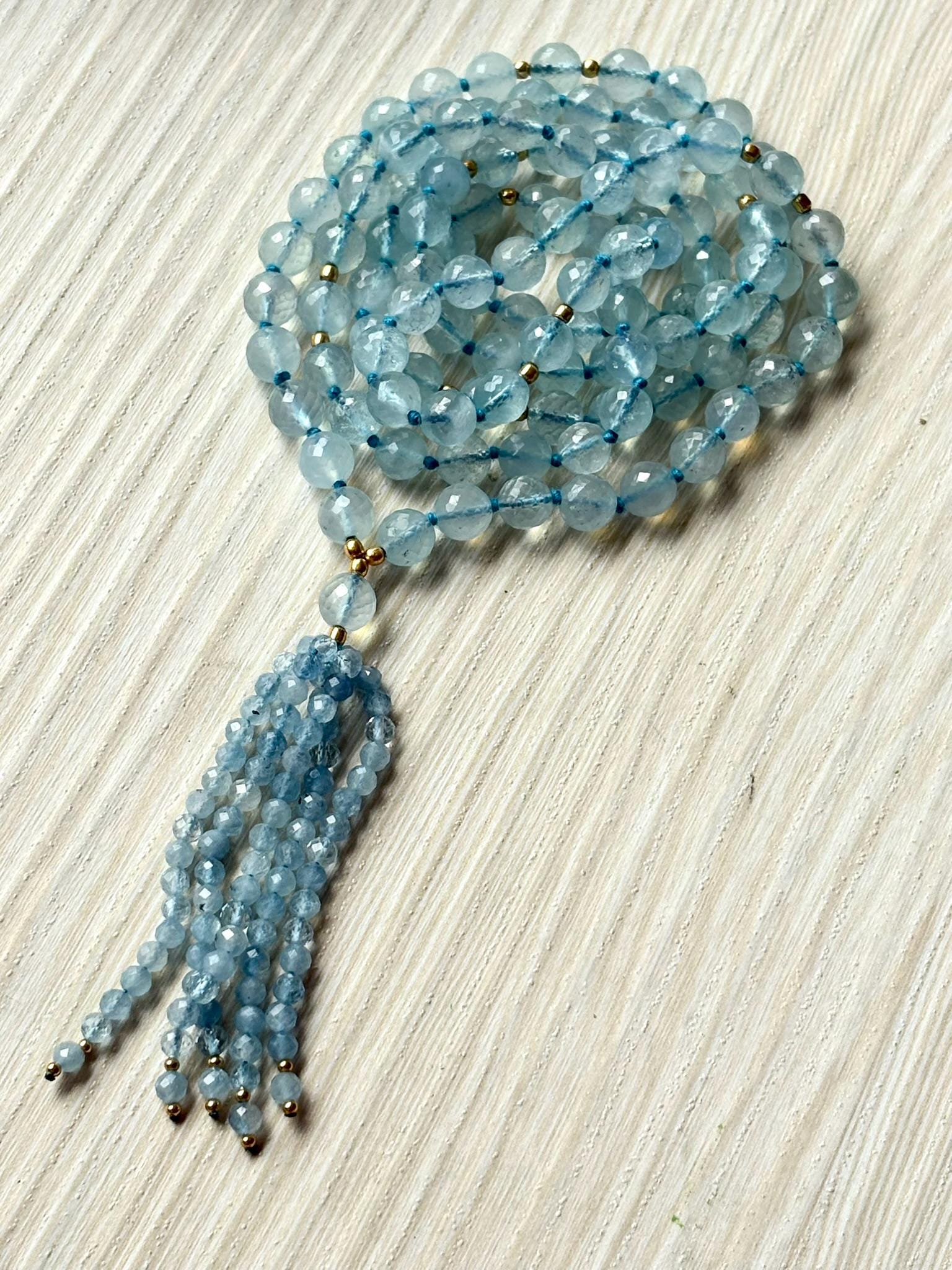 Aquamarine 8mm Bead Mala Necklace,108 japa mala beads, Prayer Beads, Anti Anxiety Mala Bead Necklace