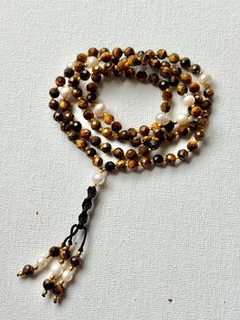 Handmade Tiger Eye and Pearl Mala | Meditation Beads | Yoga Jewelry for Men and Women