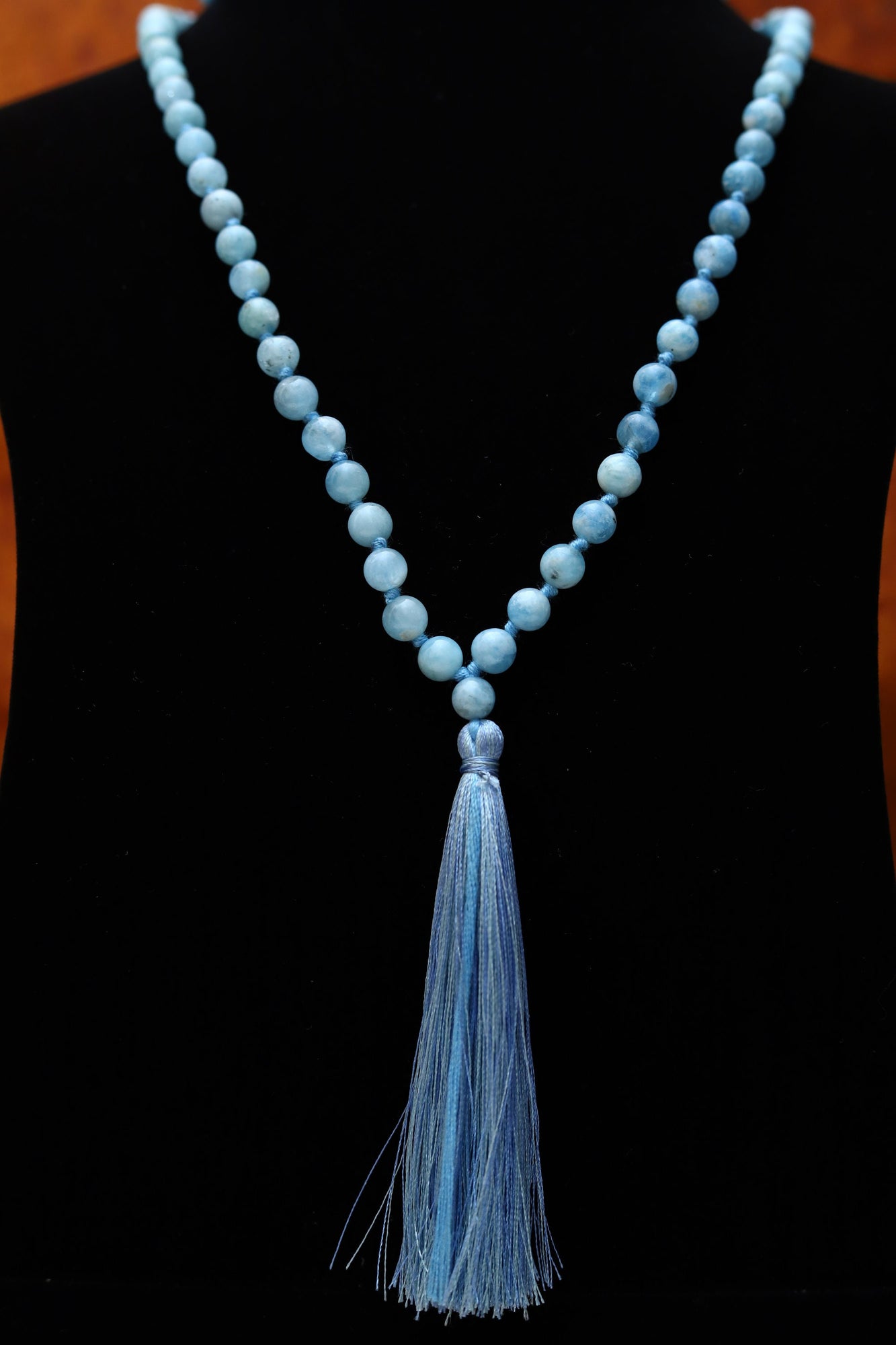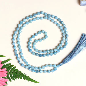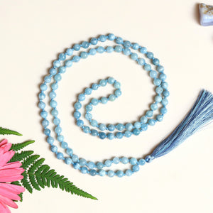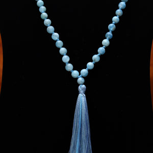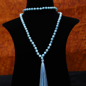 Aquamarine 8mm Bead Mala Necklace,108 japa mala beads, Prayer Beads, Anti Anxiety Mala Bead Necklace