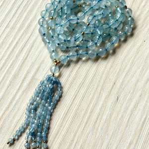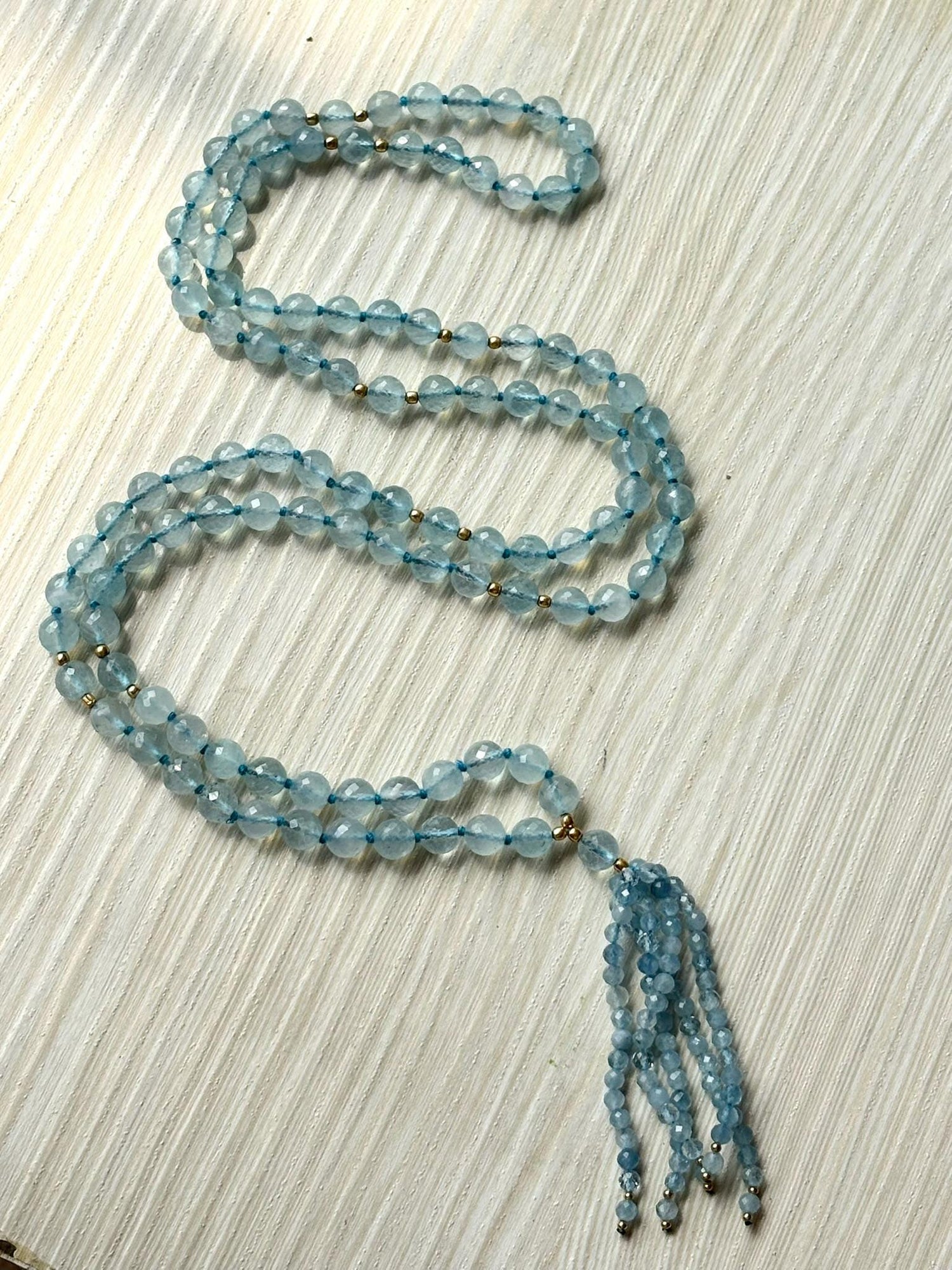 Faceted Amazonite Mala Necklace: 8mm Prayer Beads, Meditation Jewelry