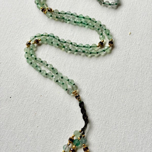 Embrace the soothing clarity of Green Fluorite paired with the grounding strength of Garnet in this handcrafted 108-bead mala necklace. Designed for meditation, intention setting, or daily wear, this mala brings balance, focus, and protective energy into your space.