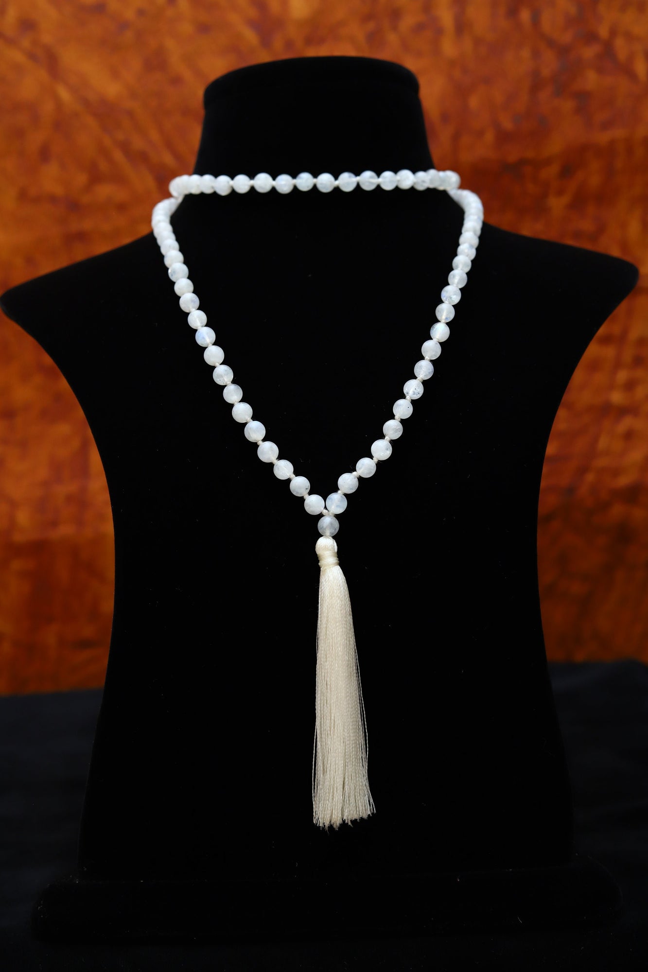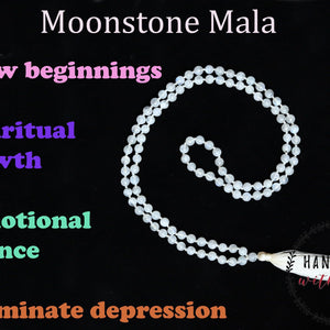 Moon Stone 6mm Bead mala Necklace, 108 japa mala beads,Crystal Beaded Necklace, Prayer Beads Mala
