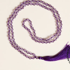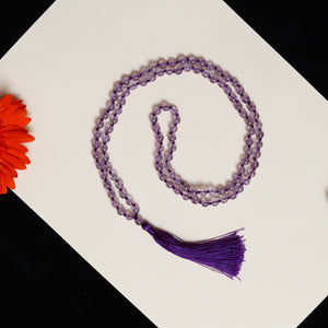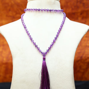 Pink Amethyst 6mm Bead Mala Necklace, 108 japa mala beads, Prayer Beads Mala, Tassel Necklace