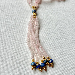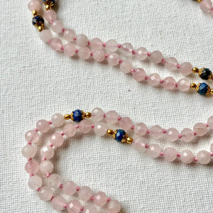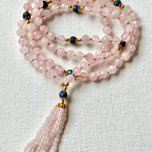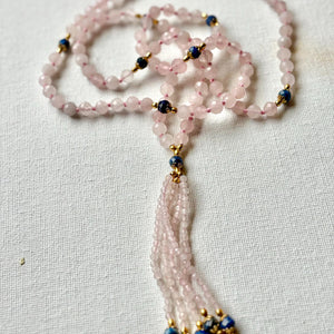 Rose Quartz Mala Necklace: Lapis Lazuli Accents, Heart Chakra Healing