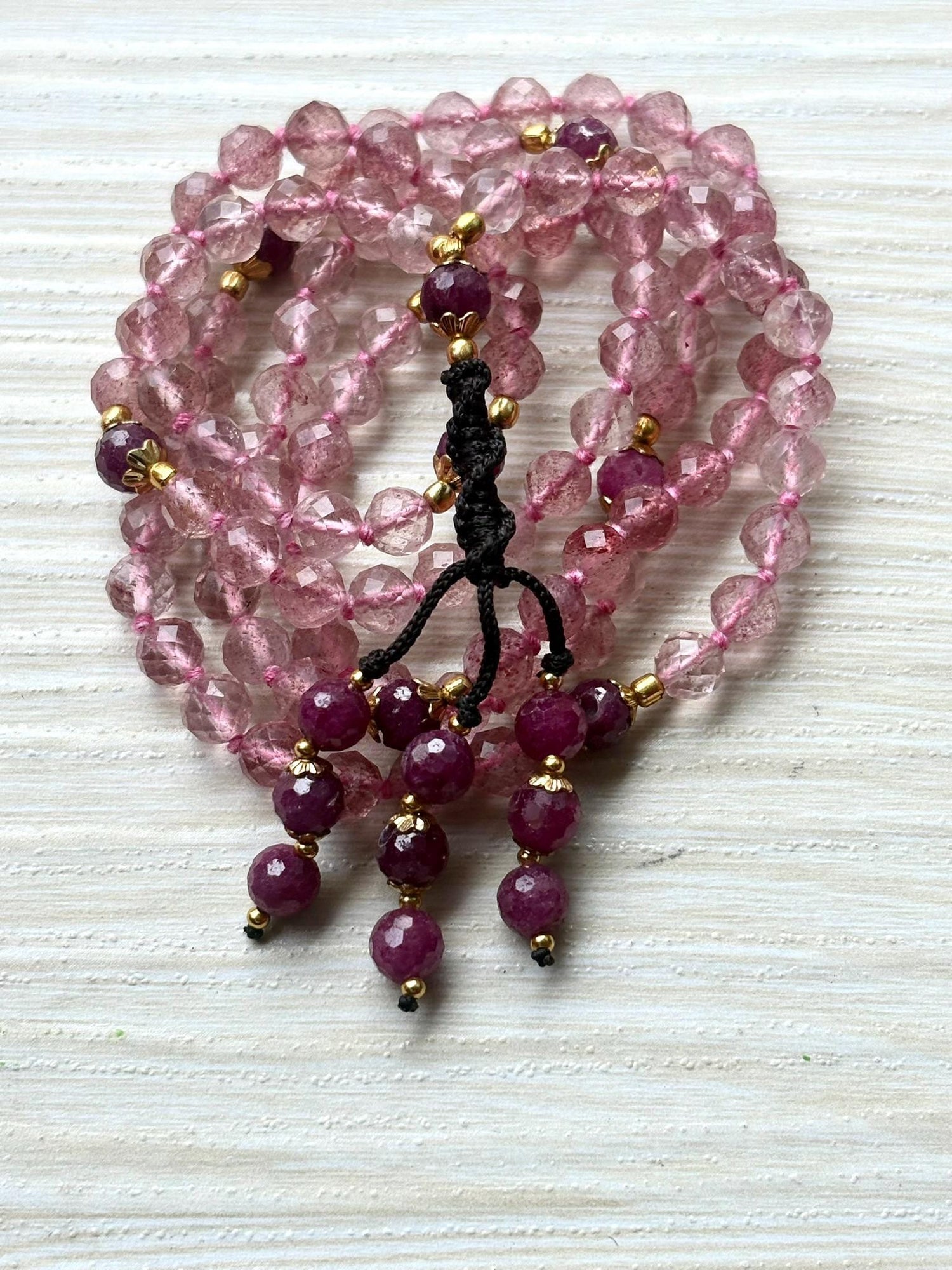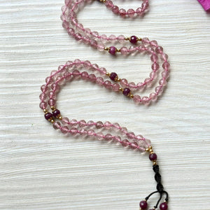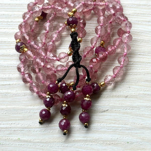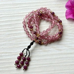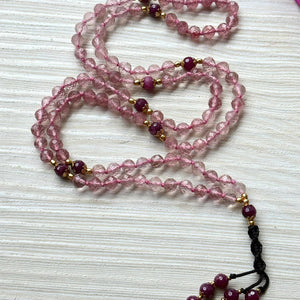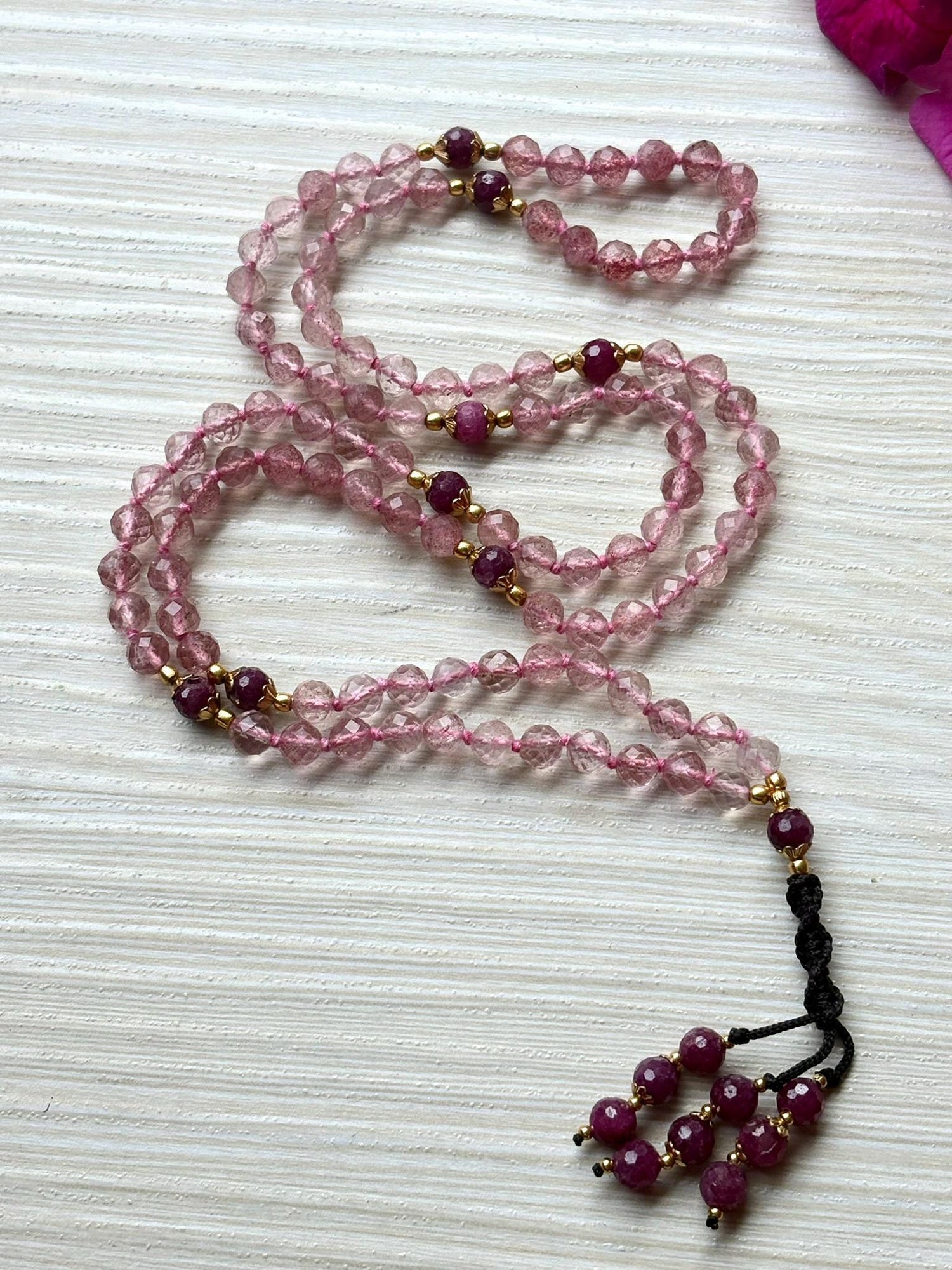 Strawberry Quartz Mala Necklace with Ruby,Tassel mala, Prayer Necklace, 108 Mala Beads, Statement Necklace Spiritual Mala